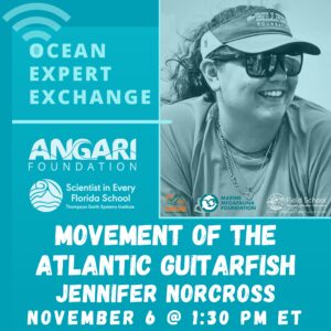 Movement of the Atlantic Guitarfish Jenny Norcross aims to understand the movement and habitat use of the elusive Atlantic guitarfish in South Florida using acoustic telemetry to better inform conservation strategies and fisheries management for this Vulnerable species. Webinars Fish Ocean Technology Adult Grades 6-8 Grades 9-12 Grades K-5